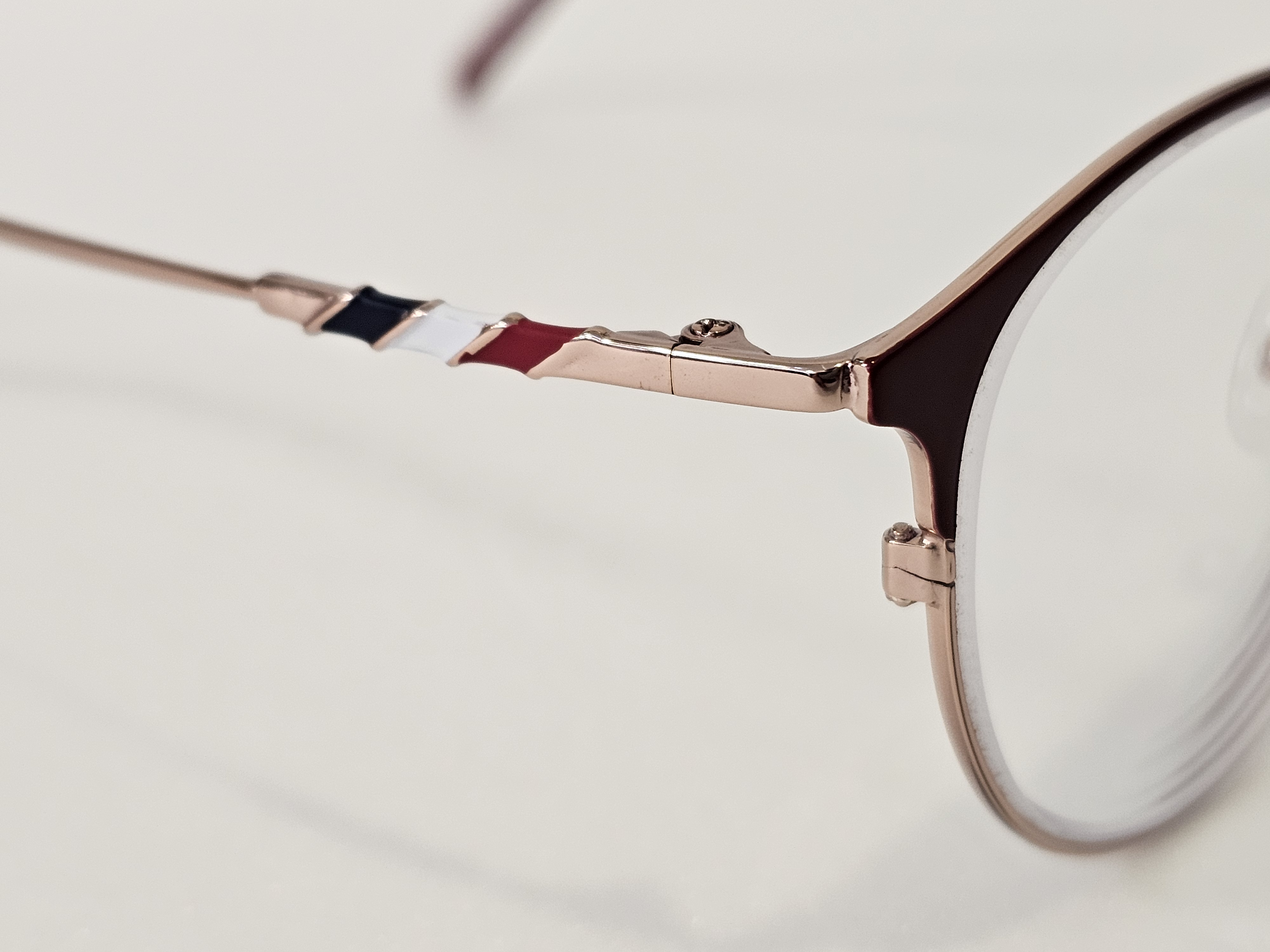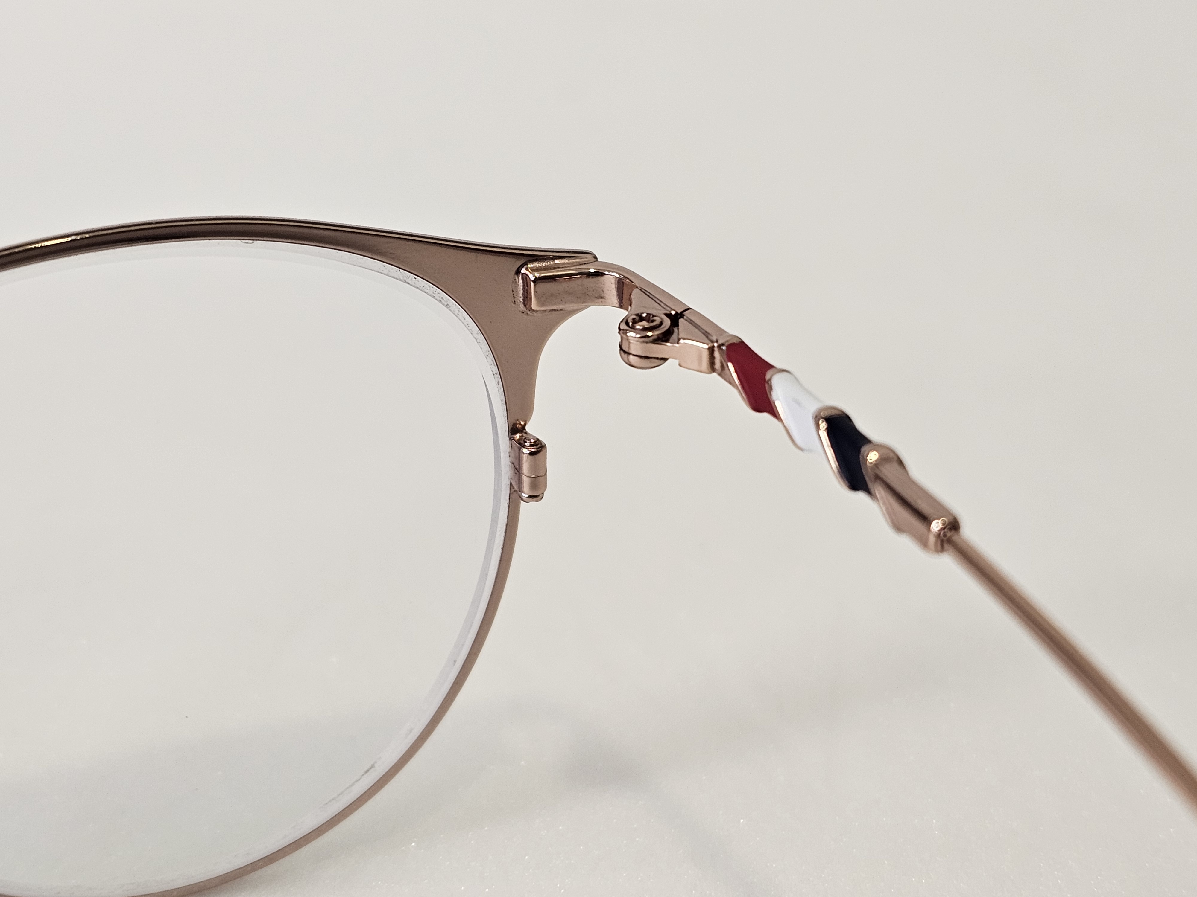 금속(메탈) 안경테 는 수리는 파손 부분 부품을 제거후에 새로운 부품으로 장착하는 방법으로 진행되며 용접으로 인한 그을림은 재 도금 처리로 새것 같은 광택으로 재 탄생합니다 이번수리도 완벽하게 수리 되었습니다
