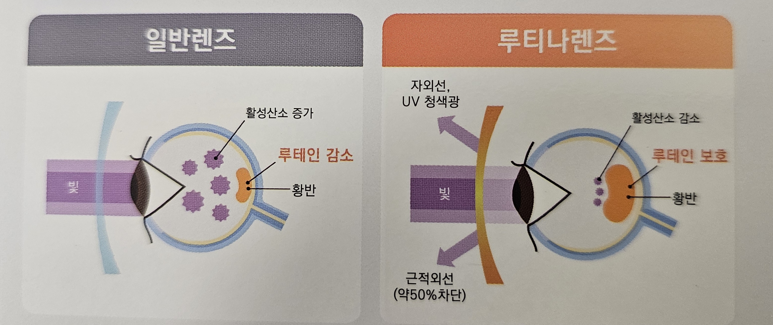 1. 황반 보호 : 루테인 안경 렌즈는 황반에 직접적인 손상을 줄 수 있는