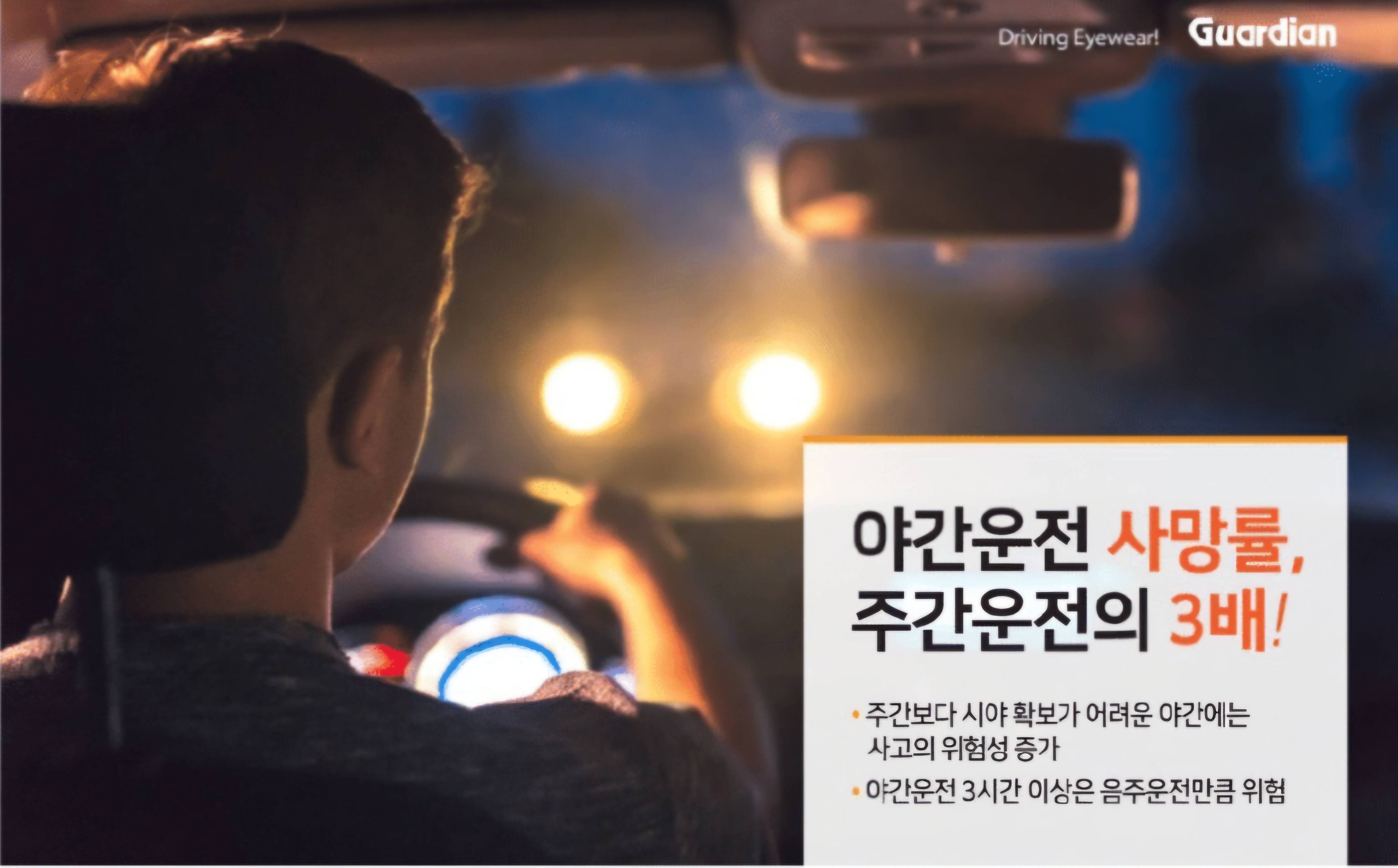 가디안 안경렌즈는 야간 운전에 특화된 안경렌즈로 야간 운전 시 나타나는