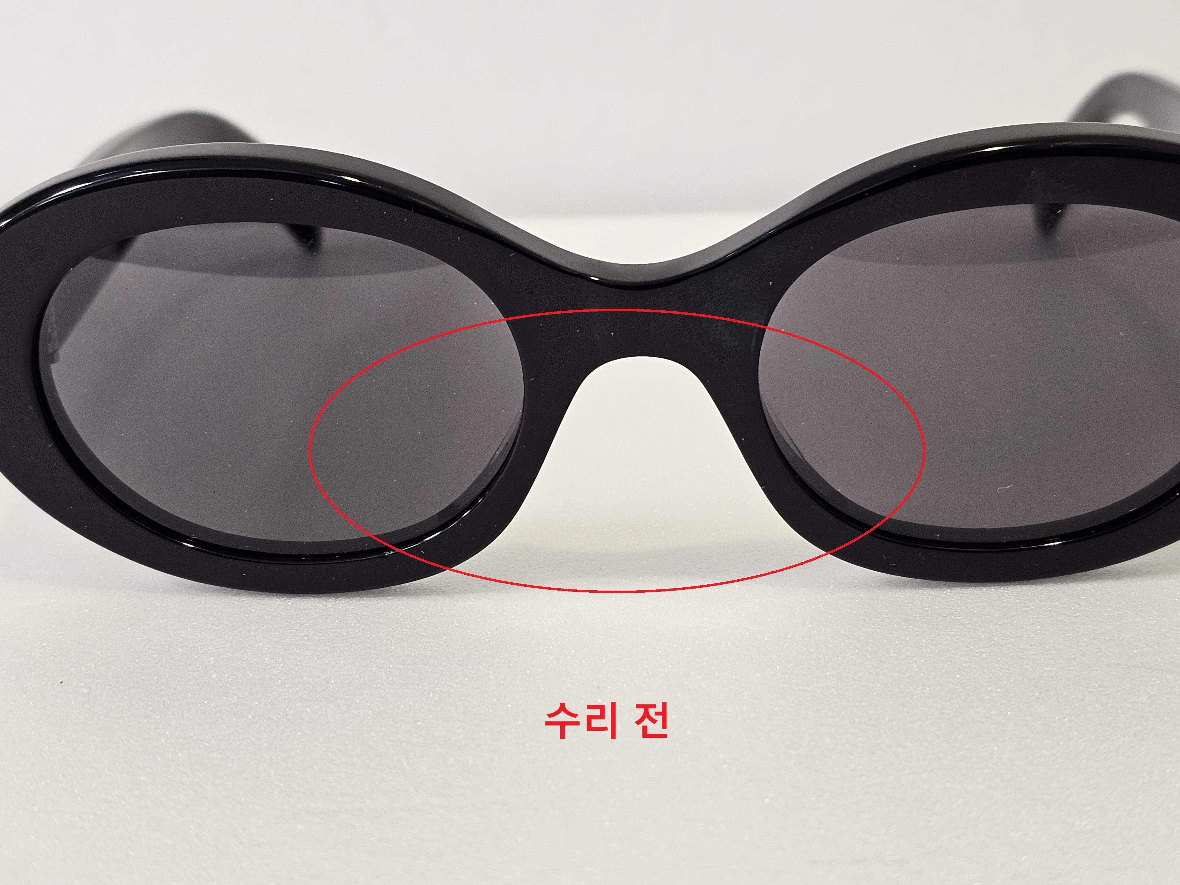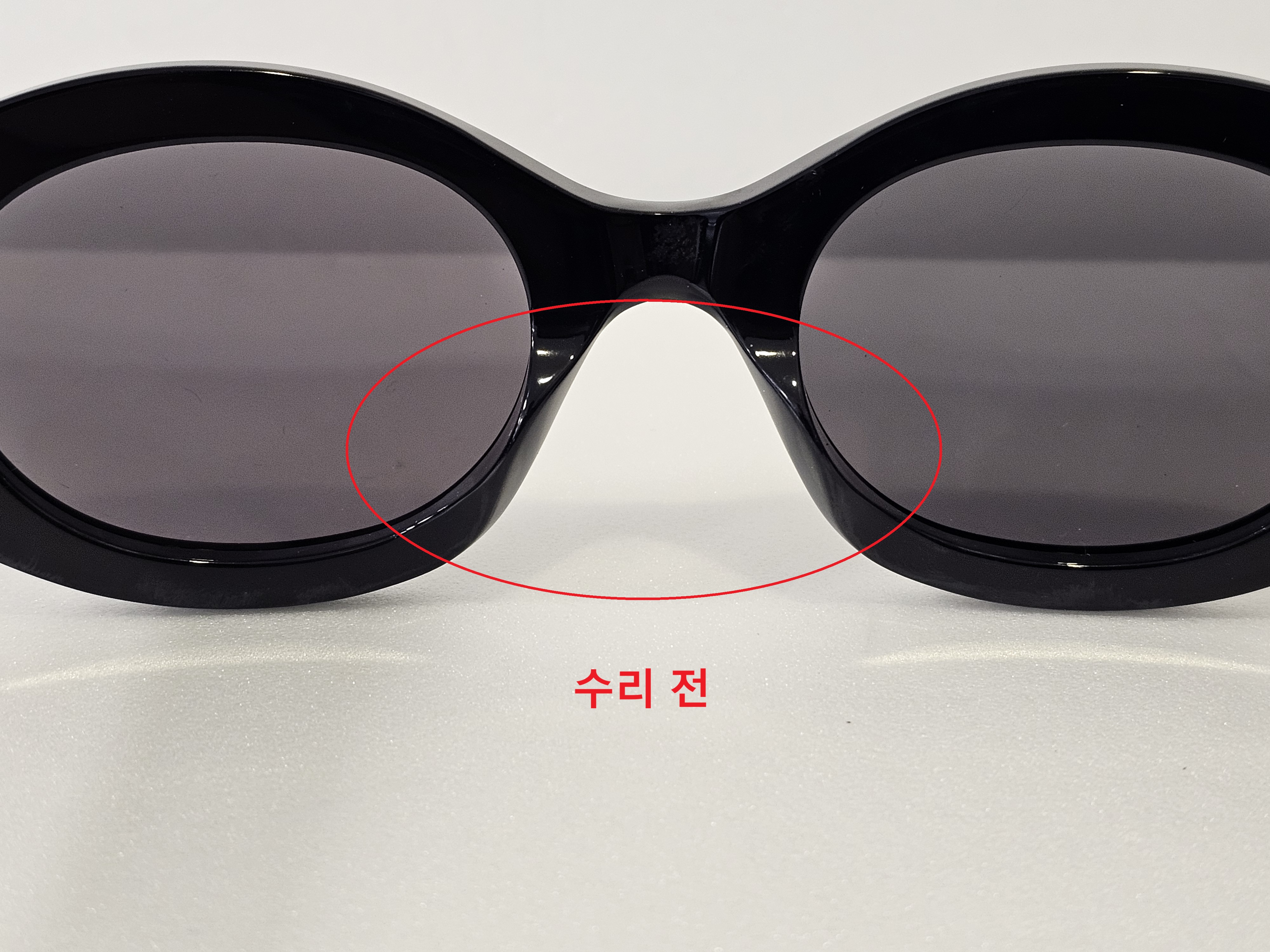 안녕하세요 이번 수리는 선글라스 코받침 달기 수리입니다 면세점에서 구입하신 선글라스인데 착용시 너무 흘러내려 수리 방문 하셨습니다 이무래도 명품이나 수입 브랜드는 얼굴 체형이 달라서 흘러내림이 생기는것 감습니다 수리 시작합니다
