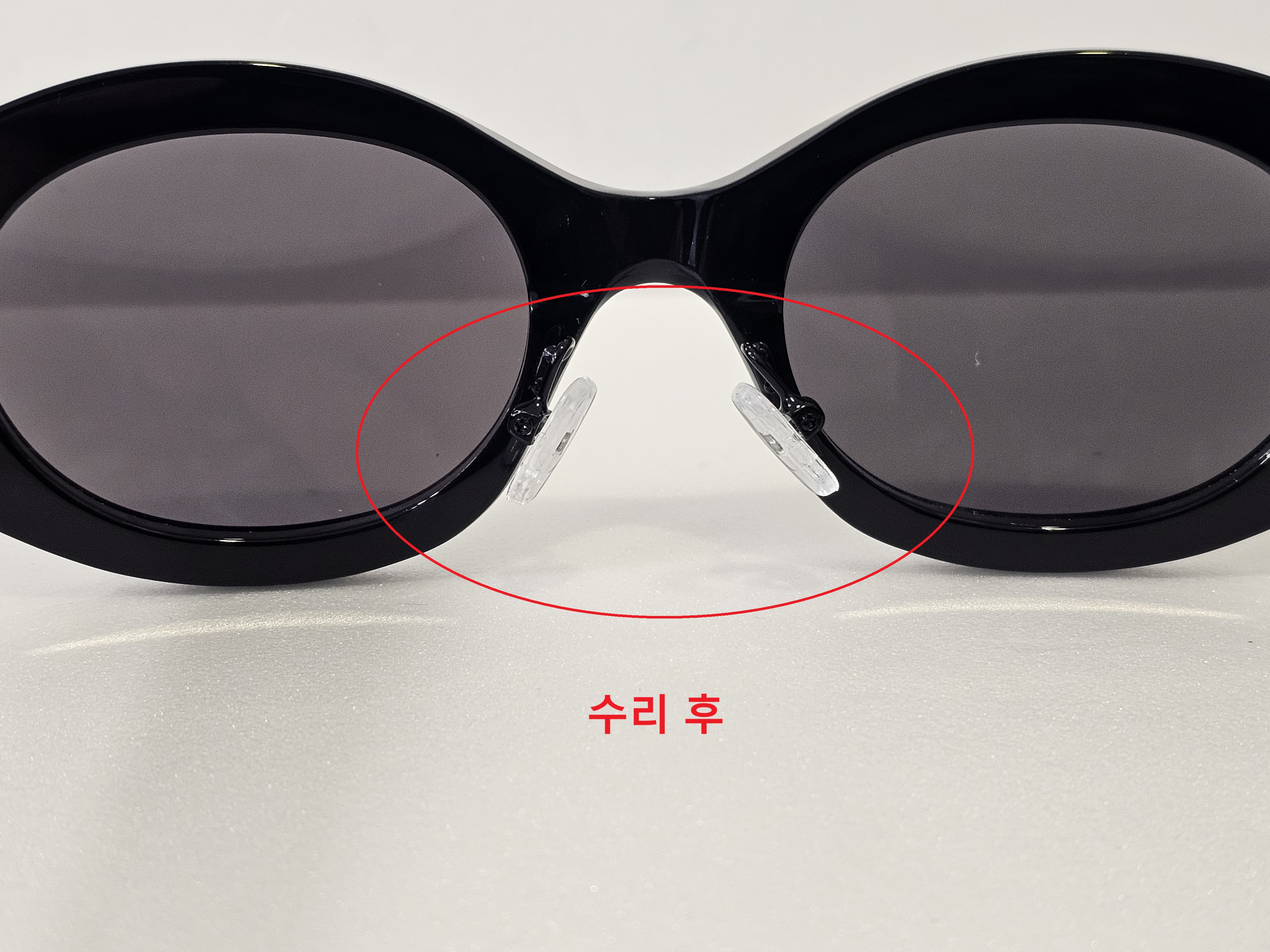약 2주의 시간이 소요됬지만 수리 안한것처럼 원래 있던것처럼 새롭게 수리 되었습니다 고객님도 착용해 보시고 안정감이 있고 얼굴을 감싸는 기분이라 하셨습니다 선글라스 코받침 수리는 목포 이마트 안경입니다
