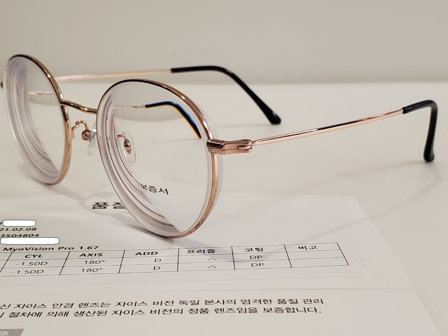마음으로 5년 전에 처음 처방되었던 안경렌즈입니다