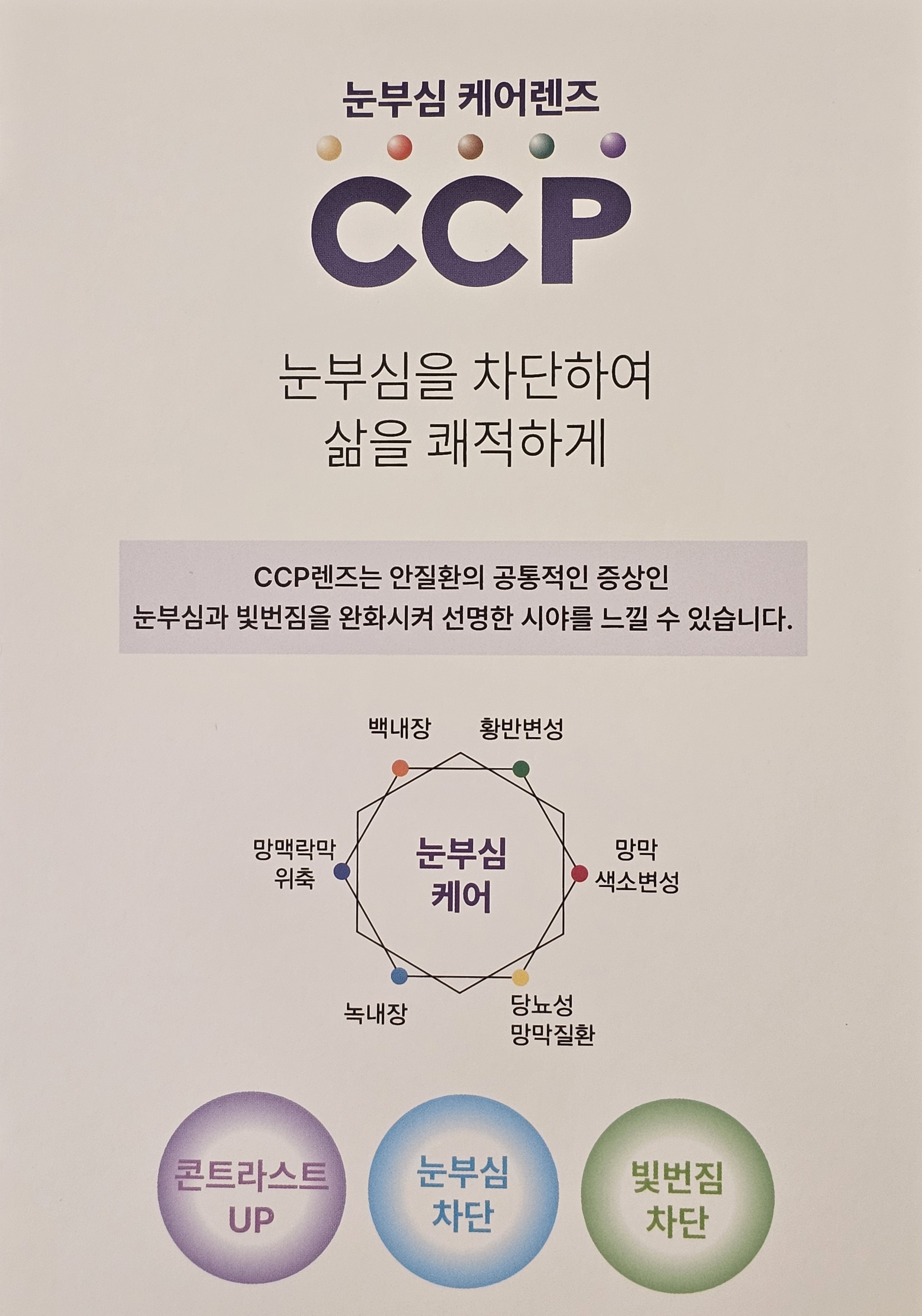 그래서 필요한게 안질환 케어 렌즈 CCP 렌즈입니다