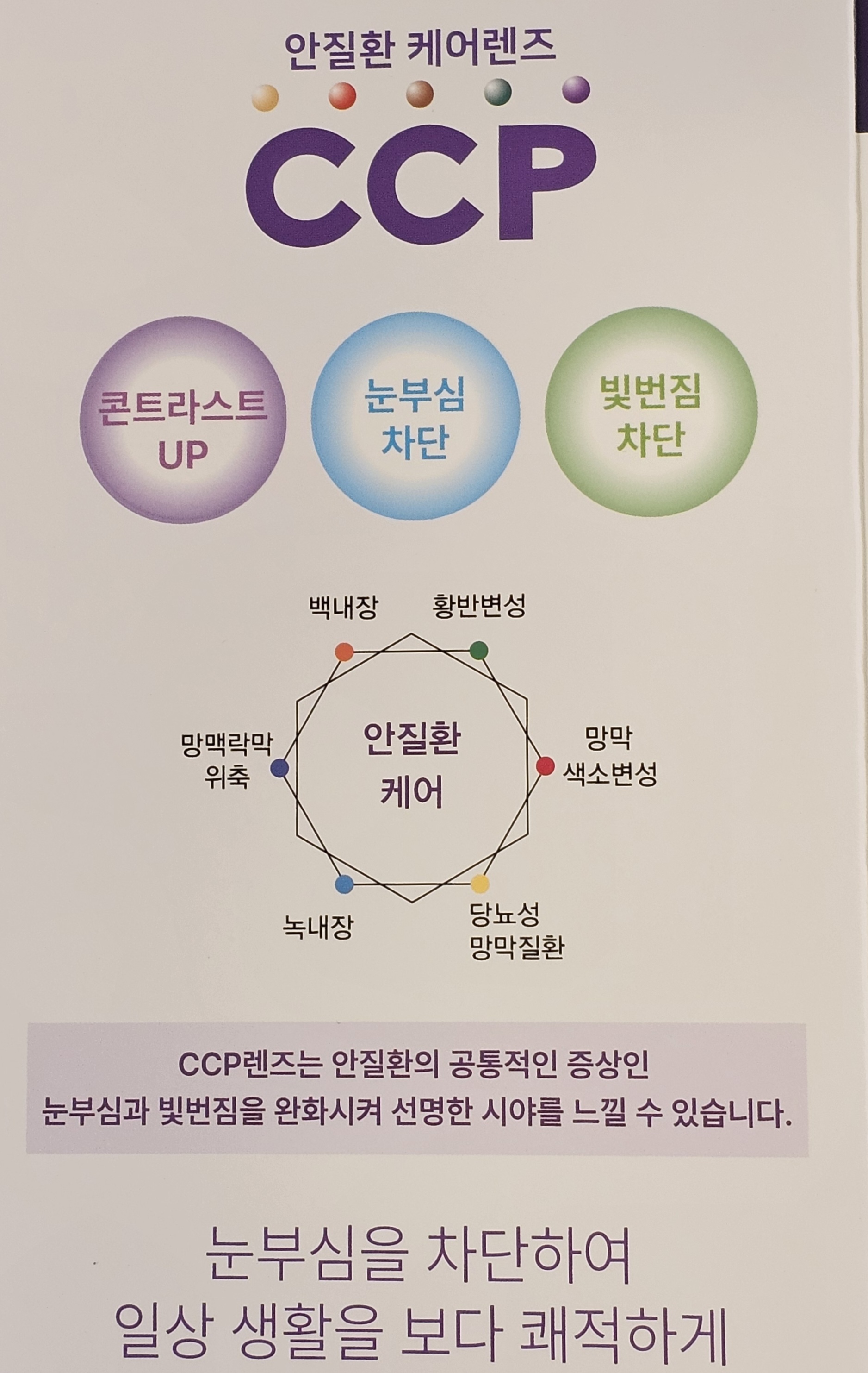 CCP 안경렌즈는 각종 안질환 때문에 발생하는 불편함을 해결하고 시원한 시야를