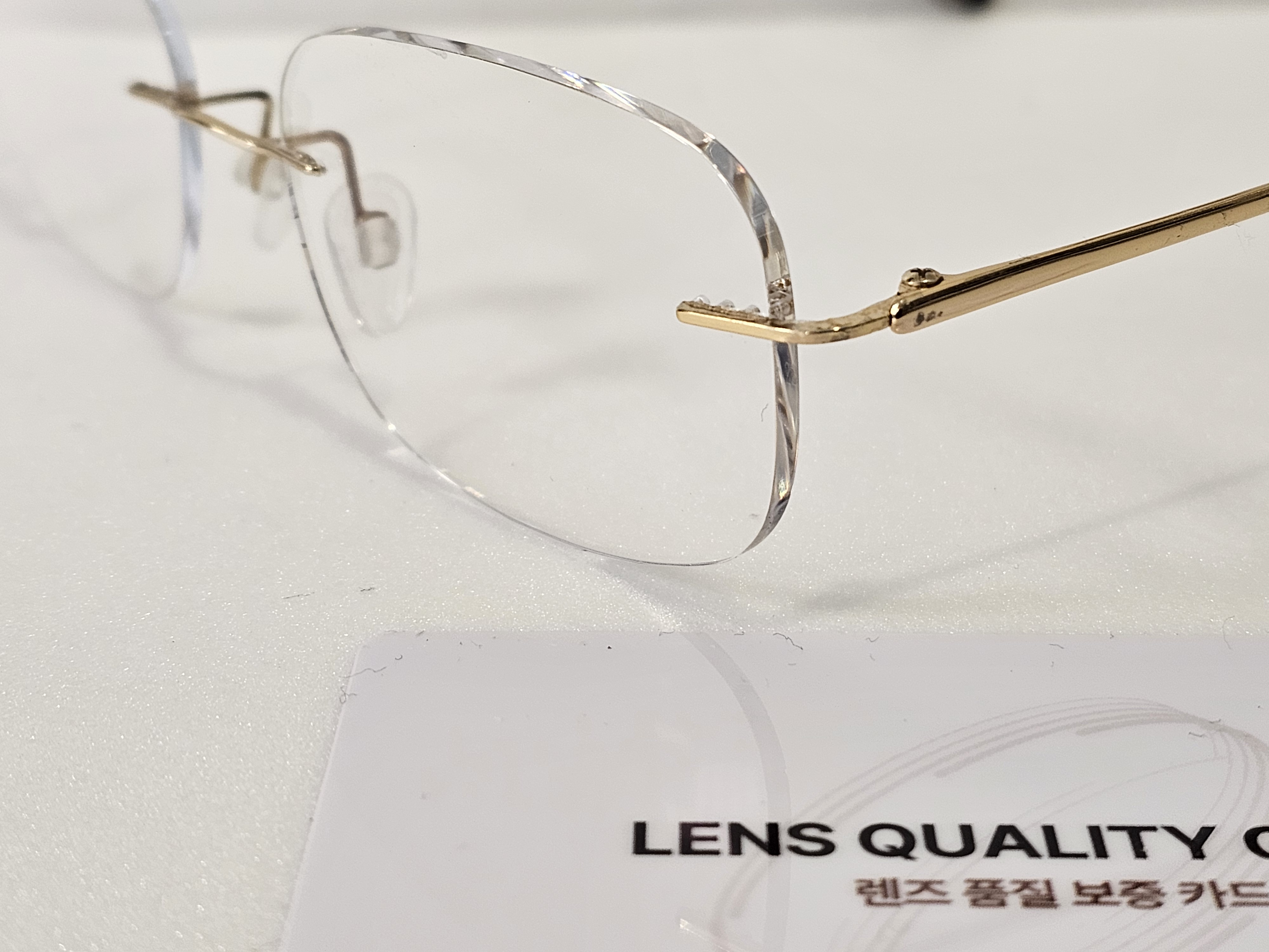 목포 이마트 안경원의 무테는 렌즈 고정하는 나사가 없는 것이 특징입니다